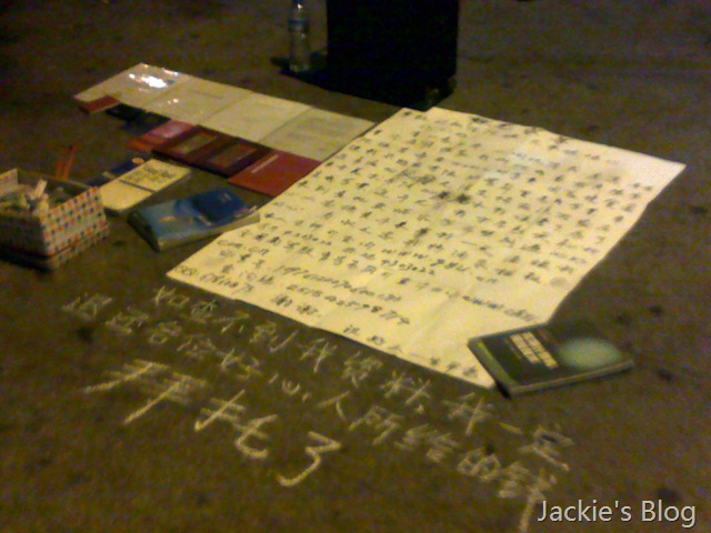 这个大学生吸引我的不是他的歌声,而是摆在他面前的几本书和一些证书,还有一句话:如查不到我资料,我一定退还各位好心人所给的 钱,拜托了。这也许是吸引其他一些路人驻足观看的原因,周围确实围起了不少人,大概有十几二十个吧。