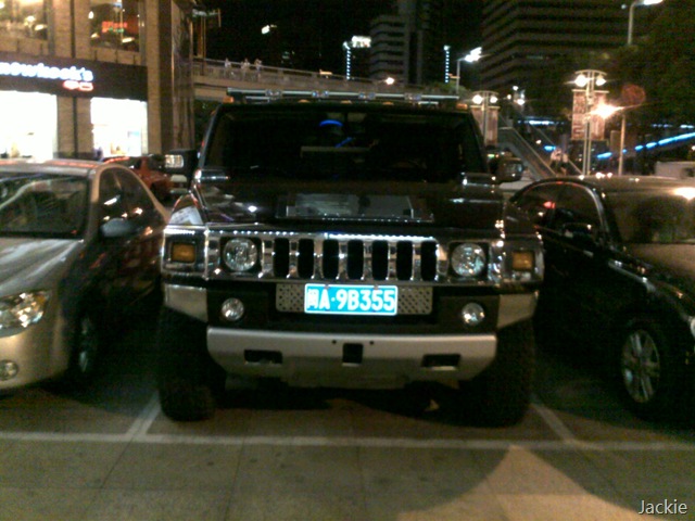 晚餐就在公司附近的一家酒店里,这家酒店叫啥名字忘记了,反正是我第一次去,虽然去过几次香格里拉,金源啥的,但是没在里面用过餐……晚上的酒店不比那些五星级差,就是规模不及那些五星级的而已。看看停在下面的车就可以知道了,Audi A6L、Benz的S series,BMW的7 series,还看到一辆“坦克”……在看悍马的时候,旁边的“QQ”不乐意了(我们占道了),给了我们两声汽笛。